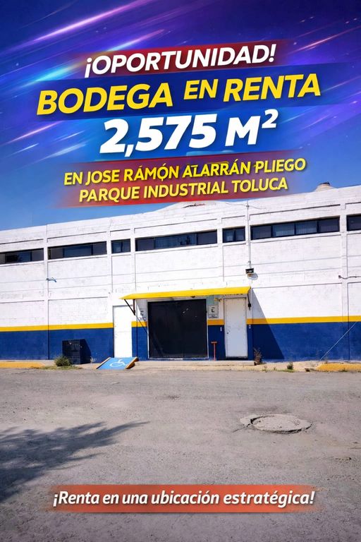 BODEGA EN RENTA 2,575 M² EN JOSE RAMÓN ALARRÁN PLIEGO PARQUE INDUSTRIAL TOLUCA